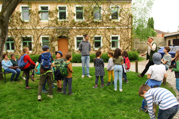 Herr Bortlik berichtete vom Hirsch, der ihm und den jungen Bäumen das Leben schwer macht, von den Schädlingen, die Biologisch bekämpft werden, und von den Vögeln und Mäusen, die hier leben. Alles in allem gibt es hier viel zu tun. Nach der kleinen Pause, ging es zurück nach Briesnitz. Herr Bortlik wurde mit Dank verabschiedet. Auf dem Pfarrhof angekommen war noch Zeit für ein gemeinsames Spiel.