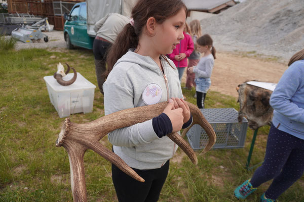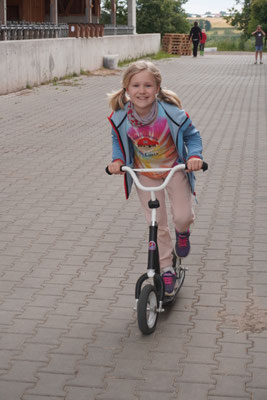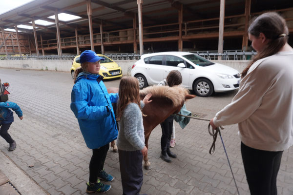 Auch das gelang ihnen gut, und der oder die Mutigste trug die Geschichte in freier Natur vor. Natürlich waren die Geschichten bezaubernd, die Ameisen haben schon eine gehörige Portion Phantasie. Dann machten wir uns langsam auf den Rückweg, wobei jede Ameise noch ein kleines Stück auf einem Pony "reiten" durfte. So kann man doch eine Schulwoche ausklingen lassen.