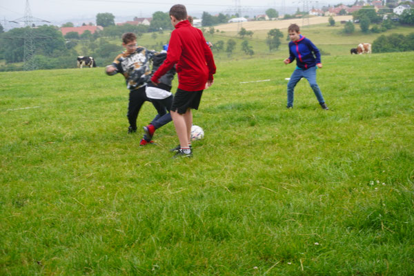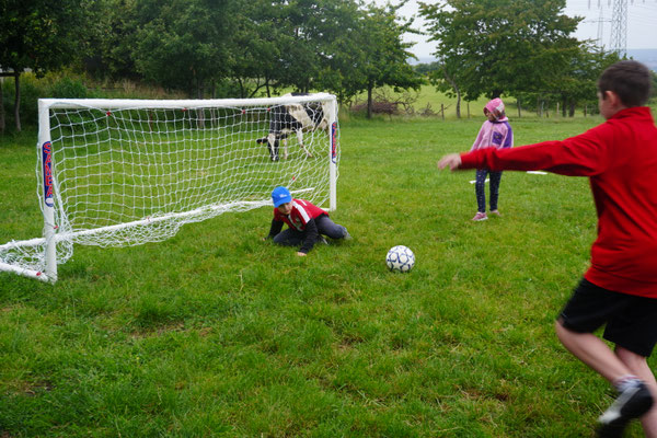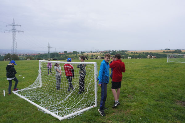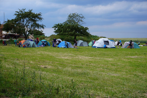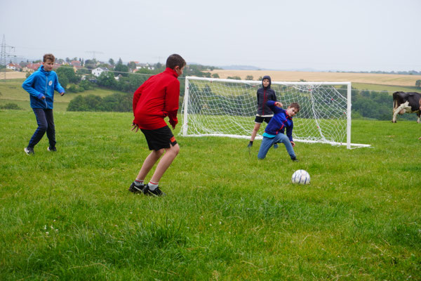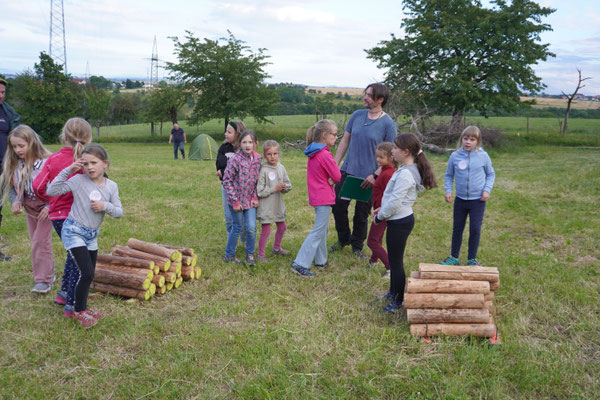 2. Erfinde eine Geschichte über ein Tier deiner Wahl, das im Zoo lebt. 3. Dichte ein "Elfchen" über den Zoo. Am Ende dieser Pädagogischen Rundreise galt folgender vorläufiger Punktestand: 52 Punkte Biber; 52 Punkte Störche, also war genügend Spannung und Ehrgeiz für die nächste Runde aufgebaut. So liefen wir dann vergnügt vom Zoo immer am Radweg entlang zum Areal Palme, unserer Unterkunft. Gegen 20:00 Uhr waren die Kinder schon wieder mit einem Ballspiel unterwegs, vorher bezogen wir natürlich die Unterkunft. Die Erwachsenen kümmerten sich um das Abendessen, und die Kinder sammelten die nächsten Punkte, so dass es zum Abschluss des Abends 12 Punkte für die Biber und 14 Punkte für die Störche dazu gab. Gegen 20:40 Uhr hielten dann alle Kinder ihre lecker Tschechische Wurst über die Grillschale, mampften Gurke und Tomate dazu, und probierten neuen Senf aus. Natürlich war der Tag noch lange nicht vorbei. Im Areal Palme gibt es einen 1A Fußballplatz, und es waren alle voller Begeisterung beim Spiel dabei. Gegen 22:00 Uhr war es dann aber an der Zeit einer Geschichte zu lauschen, und den Körper langsam Richtung Schlafmodus runter zu fahren. Herr Hermann übte sich wieder wie jedes Jahr als Geschichtenerzähler des James Krüss. Die Erwachsenen und Teamer saßen noch ein Weilchen am ausklingenden Feuer. Was für ein ereignisreicher erster Tag.