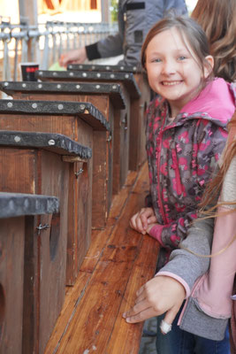 " alte Zeiten". Wir hatten viel Zeit , so konnte in aller Ruhe jedes Tier betrachtet, erfühlt und bestaunt werden. Die lieben Ameisen wussten natürlich gut Bescheid, fast jeder hatte ein Grundwissen von Schlangen, Fröschen, und Spinnen. Ein reger Austausch fand mit den uns betreuenden Mitarbeiterinnen statt. Dann wechselte die " Terrariumgruppe" mit der " Präsentationsgruppe" die Räume. Auch da stellte es sich heraus, viele Kinder haben ein gutes Grundwissen von den Tieren. Berührungsängste gab es kaum, hier mal ein aufgeregtes Herz, und da ein neuer Mut der entstand, so sollte es sein.