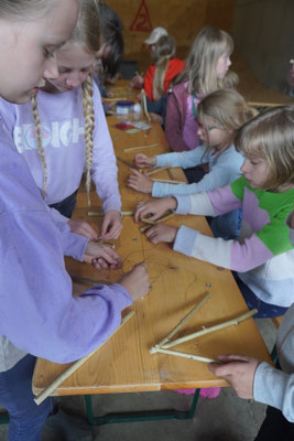 Die Kinder wurden vertraut gemacht mit dem Anlegen einer kleinen Hecke, die aus abgeschnittenen Ästen hinter Stützpfeilern aus Holz " gestopft" wurden. Wie man auf den Bildern sehen kann, wurde viel Teamgeist und Zusammenarbeit gefordert, was auch gut funktionierte. Immer öfter werden wir von den beiden Ponnymädchen aus der Zschone begleitet, was den Ameisen sehr zu spricht, und den kleinsten, die mit der Astarbeit nicht so gut zurecht kamen darüber hinweggeholfen hat. Am Ende waren aber alle sehr stolz auf die geleistete Freizeittätigkeit. So konnten wir auch freudig den Heimweg antreten.