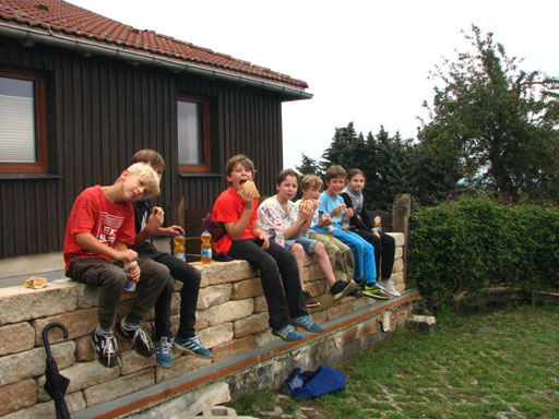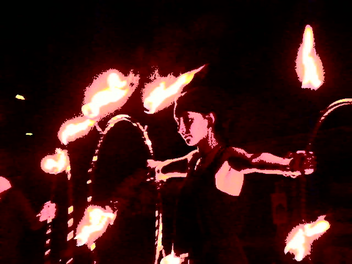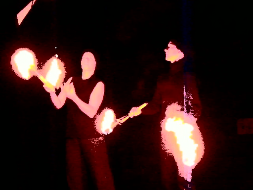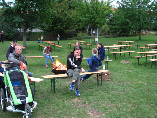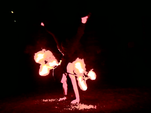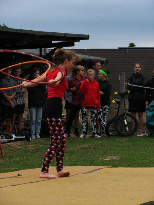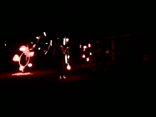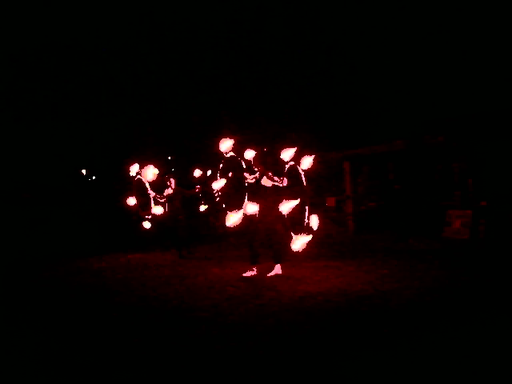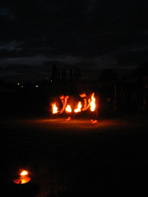 zu uns gestoßen und sang schöne Lieder, die Feuerschale brannte, es roch nach Bratwurst, als es dunkel wurde, gaben die Applaudinos eine Feuershow, und ganz zum Schluss liefen die Ameisen mit