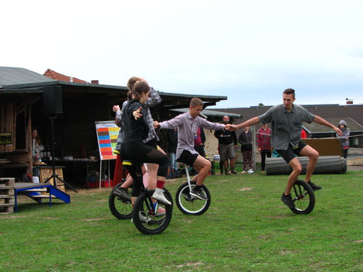 Was noch einmal erwähnt werden muss; die große Bereitschaft des Herrn Merbitz , wirklich alles zu geben, im Verbund mit seiner ganzen Familie, das hat gezeigt, wie zugeneigt er der Aktion Ameise ist! Vielen Dank. Danke auch dem Kinderzirkus, der seine Sache wunderbar gemacht hat, auch wenn die Bedingungen vielleicht nicht ganz ideal waren, aber Improvisation ist nun mal Zirkussache. Danke auch an Volkmar Funke, der mit seinen Liedern am Abend die Ruhe und Besinnlichkeit in die Runde brachte.